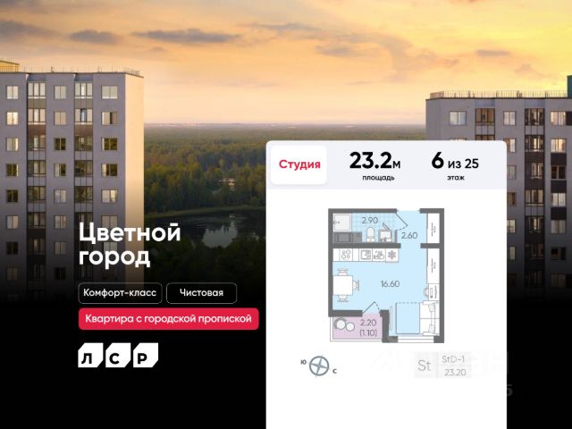 Цена действует при 100% оплате и на определенные ипотечные программы. Подробности — в отделе продаж по телефону. Продается студия в ЖК "Цветной город" на 5 этаже. Общая площадь составляет 22.30 кв. м. Квартира с чистовой отделкой Срок сдачи дома: 3 квартал 2026. Жилой комплекс "Цветной город" располагается по адресу Санкт-Петербург, Красногвардейский. "Цветной город" - современный масштабный эко-проект: жилые кварталы со своей сетью улиц, пешеходными бульварами и велодорожками, площадками для спорта и отдыха. Кварталы располагаются вдоль береговой линии реки Охты. "Цветной город" - это жизнь вблизи природы, но с городской пропиской. К 2026 году на берегах реки Охты будет создан Пейзажный парк с летними экотропами и зимними горками для тюбингов, скейт-парком и летним кинотеатром. В ЖК "Цветной город" запланировано и уже частично реализовано строительство 10 школ, 16 детских садов, 4 поликлиники, больница, ТРК, спортивно-оздоровительные сервисы С центром Петербурга жителей "Цветного города" свяжет Пискарёвский проспект, удобный выезд на КАД позволяет без труда добираться до других районов. Расположение: • 10 минут на авто до КАД; • 15 минут на авто до станций "Гражданский проспект" и "Академическая"; • 20 минут до ж/д станции "Ручьи".; Квартира сдается с готовой отделкой из современных экологичных материалов: на стенах плотные белые обои под покраску, на полу износостойкий матовый ламинат, в санузлах керамическая плитка на стенах и керамогранит на полу. Трубы отопления скрыты в стяжке пола и не мешают мебели. В квартире предусмотрено большое количество двойных розеток и выключателей. В ЖК "Цветной город" предусмотрена система "Умный дом": смартфон с приложением является ключом от всех дверей в ЖК, гостевой доступ оформляется в приложении, видеозвонки от домофона поступают в приложение, показания счетчиков автоматически передаются в учетные базы ЖКХ. Преимущества: • Рядом лесопарк и река Охта • Живописные виды из окон • Безбарьерная среда • Развитая социальная инфраструктура • Система "Умный дом" Успейте приобрести квартиру на выгодных условиях! Чтобы узнать подробности, обращайтесь за консультацией по телефону. Квартира-студия от застройщика на дороге Муринская в Санкт-Петербурге.