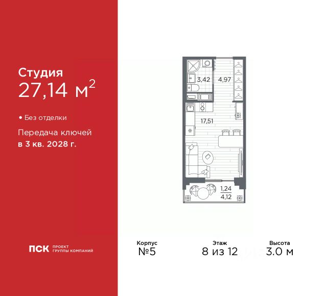 Просторная однокомнатная квартира-студия с предчистовой отделкой в ЖК "LEGENDA Васильевского" на 2 этаже. Общая площадь: 28.07 кв.м., площадь гостиной 20.82 кв.м., из которых 6.35 кв.м. выделено под кухонную зону. Все окна выходят на одну сторону. В квартире один совмещенный санузел. Высота потолков 2.7 м. "LEGENDA Васильевского" жилой квартал в минутной доступности от Финского залива, главного креативного хаба Санкт-Петербурга Севкабель Порта и других точек притяжения. Современные инженерные и технические решения, повышающие качество жизни TechnoBox включают в себя: стационарный и удаленный контроль дома, систему вентиляции Air Design - здоровое дыхание без лишнего шума, мультисервисную сеть, объединяющую коммуникационные системы, удаленное управление электроприборами, контроль отопления в каждом помещении, поддерживающий оптимальный температурный баланс во время "холодного" периода", датчики протечки, датчик открытия входной двери. Мультисервисная сеть (МСС) объединяет ключевые слаботочные системы дома, задавая им единый высокий стандарт работы, обеспечивая надёжность их функционирования и управления. Квартира готова к декорированию. Застройщиком сделана шумоизоляция; стены подготовлены для отделки; проведена электрика с учетом рекомендаций по расстановке мебели и бытовой техники; выровнен пол. В каждой квартире установлена взломостойкая входная дверь, окна со специальным термоизолированным алюминиевым профилем. Двор жилого комплекса "LEGENDA Васильевского" закрыт. Проект состоит из шести разноформатных корпусов с ритмичными фасадами в духе пост-конструктивизма. Геометрия жилого комплекса состоит из четко простроенных осей, чередующих открытые пространства и объемы корпусов, каждый из которых обладает своим визуальным кодом индивидуальным рисунком фасада и цветовой палитрой. Корпуса образуют периметр с общественными пространствами: площадью с кафе, магазинами и пешеходным променадом с детскими игровыми хабами, местами для спокойного отдыха и workout-зоной. Срок сдачи 4 квартал 2027 года. На территории комплекса предусмотрены теплый подземный паркинг и два наземных 4-х этажных паркинга. Продается квартира-студия от застройщика рядом с метро Горный институт.