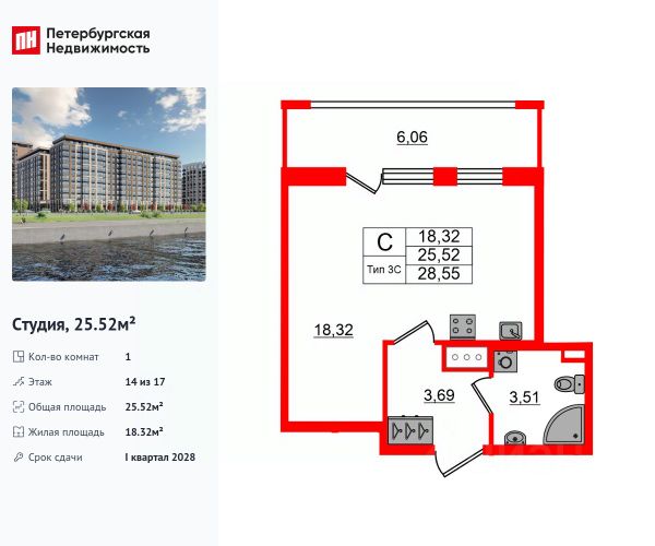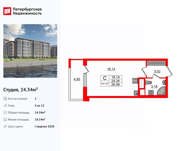 Продается уютная студия от застройщика в жилом комплексе "Сэтл Ривьера" в активно развивающимся Невском районе. До метро можно добраться на транспорте всего за 10 минут. Открытая терраса! Завтракайте или занимайтесь спортом на свежем воздухе! Уникальная, функциональная европланировка, просторная прихожая 3.38 м². Общая площадь студии - 22.61 м², жилая 16.17 м², высота потолка 3.04 м. Квартира продается с отделкой "Норд Лайн серый плюс". Что особенного в ЖК "Сэтл Ривьера"? • Первая береговая линия Невы. 5 км до центра Петербурга • "Активити парк" - пространство для занятий спортом и отдыха. "Ривьера парк" с променадом и панорамной ротондой • Масштабные дворы 10 000 кв.м. с авторским ландшафтным дизайном • Двухуровневые единые входные группы • Видовые квартиры с террасами, каминами и саунами Продается квартира-студия от застройщика на набережной Октябрьская в Санкт-Петербурге.