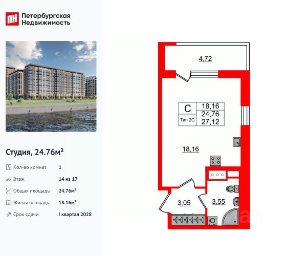 Продается уютная студия от застройщика в жилом комплексе "Сэтл Ривьера" в активно развивающимся Невском районе. До метро можно добраться на транспорте всего за 10 минут. Открытая терраса! Завтракайте или занимайтесь спортом на свежем воздухе! Уникальная, функциональная европланировка, просторная прихожая 3.38 м². Общая площадь студии - 22.61 м², жилая 16.17 м², высота потолка 3.04 м. Квартира продается с отделкой "Норд Лайн серый плюс". Что особенного в ЖК "Сэтл Ривьера"? • Первая береговая линия Невы. 5 км до центра Петербурга • "Активити парк" - пространство для занятий спортом и отдыха. "Ривьера парк" с променадом и панорамной ротондой • Масштабные дворы 10 000 кв.м. с авторским ландшафтным дизайном • Двухуровневые единые входные группы • Видовые квартиры с террасами, каминами и саунами Продается квартира-студия от застройщика на набережной Октябрьская в Санкт-Петербурге.