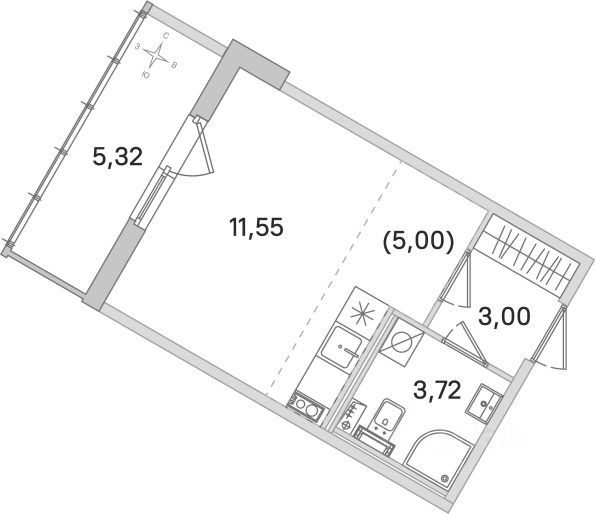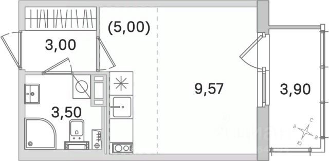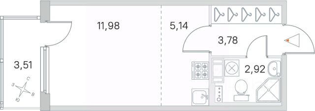 Однокомнатная квартира-студия от застройщика в ЖК "VEREN VILLAGE Стрельна" на 1 этаже. Квартира без отделки, полностью готова к чистовой отделке и дальнейшему ремонту. Общая площадь: 28.6 кв.м., площадь гостиной 19.91 кв.м., из которых 5 кв.м. выделено под кухонную зону. Все окна выходят на одну сторону. В квартире один балкон, один совмещенный санузел. Наличие в квартире террасы дает возможность для создания зон отдыха в кругу семьи и друзей. Высота потолков 2.8 м.