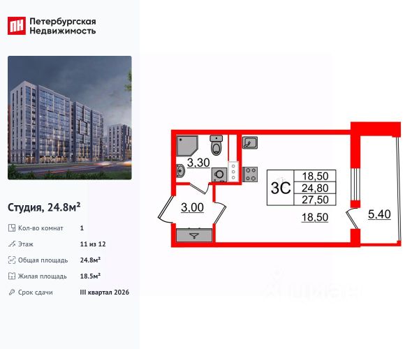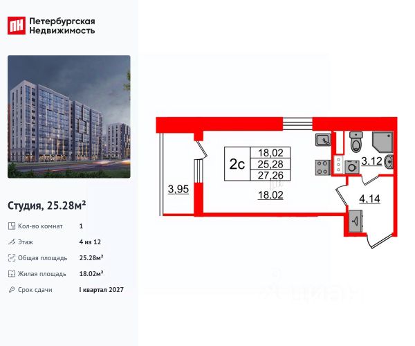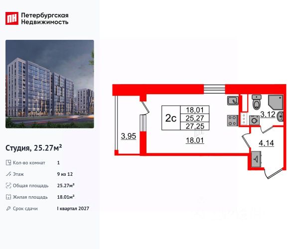 Продается просторная студия от застройщика в жилом комплексе "Бионика Заповедная" в динамичном Приморском районе. До метро можно добраться на транспорте всего за 11 минут. Удобная, классическая, функциональная европланировка, просторная прихожая 3.35 м². Общая площадь студии - 24.95 м², жилая 18 м², высота потолка 2.77 м. Квартира продается с отделкой "Норд Лайн светлый плюс". Что особенного в ЖК "Бионика Заповедная"? • Оазис в городе 3 минуты пешком до Новоорловского заказника (140 ГА) • Захватывающие виды из окон на хвойный лесопарк • Всесезонный "Заповедный парк" во дворе площадью 23000 кв.м. • 5 единых входных групп с авторским дизайном и лаундж-зонами, сити-виллы на первых этажах с палисадниками и высотой потолков до 4 м • Места притяжения: фонтан "Бионика", спортивный кластер со скейт-парком, фотозоны с арт-объектами Продам квартиру-студию от застройщика на проспекте Орлово-Денисовский в Санкт-Петербурге.