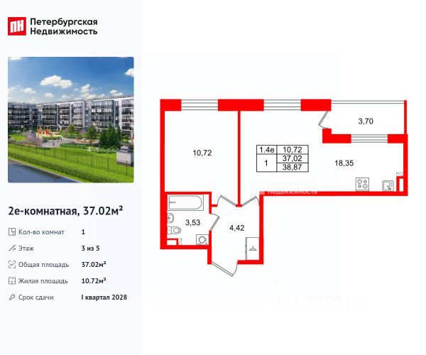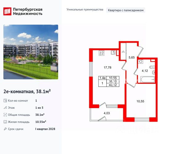 ***Характеристика. Квартира (видовая) светлая (вид на площадки в сторону д/с), с ЭКСКЛЮЗИВНОЙ ОТДЕЛКОЙ и мебелью в с/у от застройщика - 24,35 кв.м (жилая 18,04 кв.м, балкон 5,47 кв.м, с/у 3,28 кв.м, кор. 3,03 кв.м) 4 этаж из 5. Срок сдачи квартиры IV кв. 2026 года,