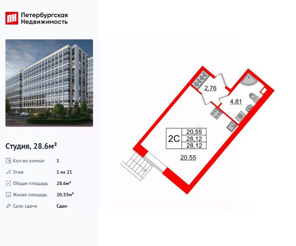 Цена со скидкой до 30% в прямой продаже от застройщика — только в этом месяце. При покупке апартаментов - паркинг за полцены. На все апартаменты действует беспроцентная рассрочка. Купите на распродаже! Покупка недвижимости в Zoom на Неве сейчас со скидкой до 30% позволит через 2 года получить доход до 6 300 000 руб. Роскошные виды на Неву. Апартамент-студия в комплексе класса бизнес-лайт Zoom на Неве на 4-м этаже. Общая площадь 26,6. Без отделки. Zoom на Неве расположен в новом месте силы рядом с центром города на первой линии Октябрьской набережной в Невском районе, всего в 7 км от исторической части Санкт-Петербурга. Большой выбор эргономичных и максимально продуманных планировок позволит каждому найти вариант по душе. Панорамные виды на Неву, благоустроенные дворы, детская игровая комната, подземный паркинг, коммерческие зоны на первом этаже, это и многое другое делает Zoom на Неве идеальным местом для жизни. Особенности: - Панорамные виды на Неву и город; - 10 мин. до Парка Строителей, 15 мин. до Лондон-молла, Ленты, Максидома, 15 мин. до метро "ул. Дыбенко", 12 мин. до КАД, 10 мин. до центра; - Единая архитектурная концепция. Сдержанные и монументальные фасады в неоклассическом стиле; - Парадный лобби для жильцов. Единый вход в комплекс с администратором, зоной ресепшн и охраной, зоной для бесконтактной доставки посылок и еды; - Подземный отапливаемый паркинг с доступом из парадной; - Доступно 3 варианта отделки на выбор: черновая, предчистовая (White Box) и чистовая; - Зоны отдыха для взрослых и детей, Wi-Fi-покрытие во дворе и в паркинге, зоны для питомцев, арт-объекты и много другое. В шаговой доступности вся необходимая инфраструктура от детских садов и школ до супермаркетов и салонов красоты; - Все происходящее контролируется видеокамерами, а покой внутренней территории и безопасность ваших детей гарантируется полным отсутствием транспорта во дворах в концепции "без машин".