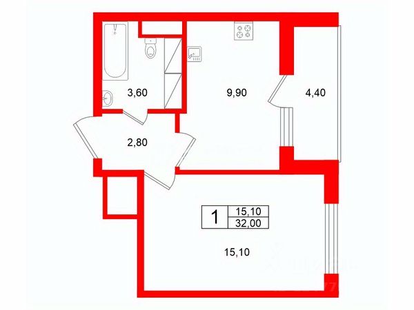 Общая площадь квартиры с учётом застеленной лоджии 36,9 м2. Современная планировка включает в себя просторную кухню- гостиную с выделенной нишей, площадью 14,10 квадратных метров, которая станет идеальным местом для семейных ужинов.