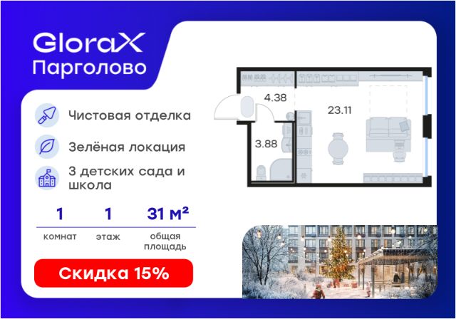 Продаётся студия в сданном доме (Корпус 2 ( Актёрский проезд, 2к1)), срок сдачи: IV-кв. 2024, общей площадью 30.4 кв.м., на 9 этаже. Жилой комплекс "Руднева 15" расположен в Выборгском районе Санкт-Петербурга, недалеко от трёх станций метро "Проспект Просвещения", "Озерки" и "Гражданский проспект".