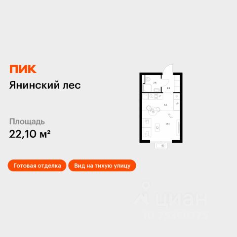 Продаётся квартира-студия площадью 22,2 кв.м на 3 этаже 15 этажного дома (Корпус 1, Секция 2) проекта ПИК Янинский лес. Светлый просторный подъезд на уровне земли, функциональная планировка, большие окна, c отделкой. Жилой квартал "Янинский лес" возводится в районе Янино-1 Ленинградской области. Автобусная остановка находится в 3 минутах пешком. Проект расположен вплотную к восточной границе Санкт-Петербурга - в 4 минутах от КАД. До метро "Ладожская" - 23 минуты на общественном транспорте. До исторического центра города можно доехать за 25 минут на автомобиле. "Янинский лес" - масштабный проект из 32 жилых корпусов, где будет всё для комфортной жизни. Здесь предусмотрены надземные паркинги, откроются детские сады, школа и поликлиника. Кроме этого, появятся места, в которых можно проводить свободное время: ледовая арена и торговый центр площадью больше 3000 м². Жилой район строится по всем правилам ПИК-Стандарта: в зелёных дворах-парках появятся современные детские и спортивные площадки, пешеходный бульвар и другие места для отдыха. На первых этажах разместятся магазины, кафе и другие сервисы. Во дворах не будет автомобилей, а для гостей предусмотрены парковочные места. Проект окружают лесные массивы. В пешей доступности находится Ржевский лесопарк: летом там можно гулять и собирать грибы, а зимой кататься на лыжах. Также рядом расположен памятник природы Колтушские высоты - парк с обустроенными экотропами и веломаршрутом. А главное место притяжения местных жителей - озеро с обустроенным местом для пикников. Артикул 1048843 (Застройщик ООО "СПЕЦИАЛИЗИРОВАННЫЙ ЗАСТРОЙЩИК"ЭКСТРАГРАД") [cn_sbp_1850375] Продается квартира-студия с отделкой в Ленинградской области.
