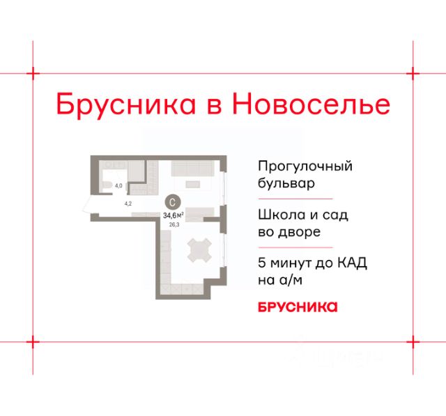 Однокомнатная квартира-студия с предчистовой отделкой в ЖК "Брусника в Новоселье" на 8 этаже. Общая площадь: 31.95 кв.м., площадь гостиной 18.8 кв.м., из которых 5 кв.м. выделено под кухонную зону. Все окна выходят на одну сторону. В квартире один балкон, один совмещенный санузел. Высота потолков 2.7 м.