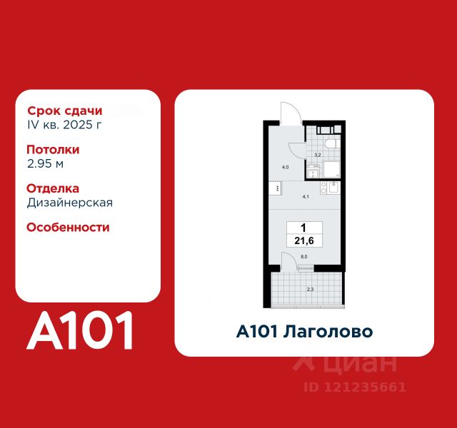 ПЕРЕУСТУПКА ПРАВА! Продаётся квартира в новостройке — ЖК "Лаголово" , корп. 1.3-2 Общая площадь квартиры — 22,4 кв. м., этаж 13 из 13, секция 1 Отделка - Карелия светлая Тип проекта, по которому построен дом — монолит Компания-застройщик — ГК "А101". Стоимость квартиры — 4 245 525 руб. Срок сдачи — 1-й квартал 2027 Более подробная информация по телефону. ПАРАДНАЯ В каждой парадной предусмотрены места для хранения велосипедов и колясок, гостевой санузел, лапамойка (место для мытья домашних животных или колес велосипедов) и удобная зона ожидания для гостей. ДВОРЫ И ОКРУЖЕНИЕ Просторные дворы свободны от машин и закрыты от посторонних. Большую часть комплекса займут благоустроенные зелёные зоны, теневые сады и городские общественные пространства с развитой тротуарной сетью и велодорожками. Каждый дом оборудован системами видеонаблюдения и контроля доступа. "А101 Лаголово" - современный город у подножия знаменитых Дудерговских высот, в объятиях чистейших озёр и зелёных живописных массивов, наполненный всем необходимым для счастливой жизни. ИНФРАСТРУКТУРА. Мы занимаемся комплексным освоением территории. Наш приоритет - доступность всех сервисов для счастливой жизни. 1. Лаголово-город 15-ти минутной доступности. Вся необходимая инфраструктура: магазины, салоны красоты, образовательные учреждения, медицинские центры находятся в 15-ти минутах пешей прогулки от любой точки жилого комплекса. Это позволяет не тратить время на долгие перемещения. 2. Представьте идеальный город, где ребенок может спокойно играть, а пожилой человек наслаждаться заслуженным отдыхом. Жилая среда нашего комплекса может комфортно использоваться как 8-летним ребенком, так и 80-летним пожилым человеком. Дома, улицы, общественные пространства, тротуары спроектированы с заботой о людях разных возрастов. 3. Мы активно развиваем авторскую образовательную экосистему "Лёрнити". Она включает строительство 8 современных детских садов (2000 мест) и 3 школ (2945 учащихся). Мы учим родителей гармонично общаться с детьми, помогаем малышам подготовиться к школе, а подросткам - выбрать будущую профессию и развить таланты.