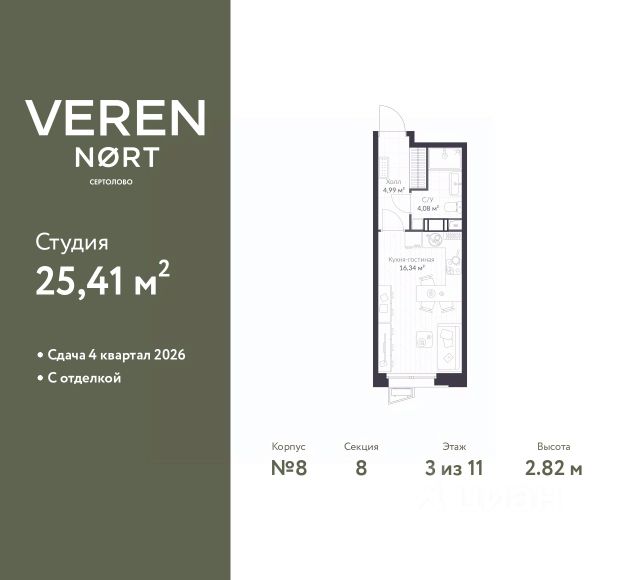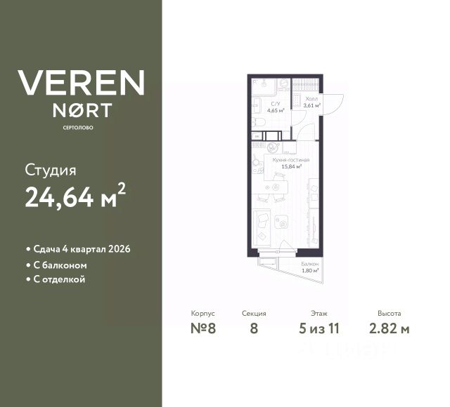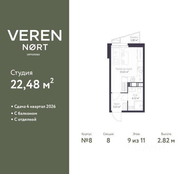 Сдавать квартиры покупателям застройщик предполагает с полной чистовой отделкой, проведенной по дизайнерскому проекту. Квартира-студия с отделкой в Сертолово.