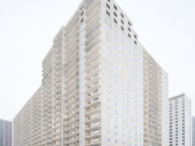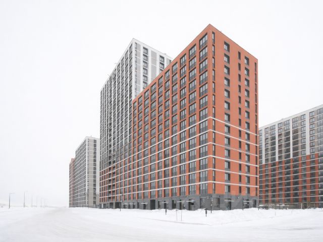 Современный жилой дом с лаконичной архитектурой и увеличенными окнами. Из квартир открываются виды на северную природу и благоустроенную территорию без индустриального окружения.