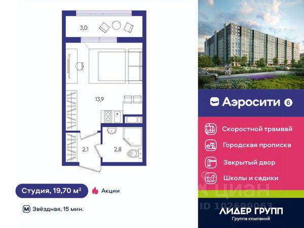 Продается по переуступке в ЖК Аэросити, корпус 6 от застройщика Лидер Групп уютная квартира студия с ключами и чистовой отделкой!