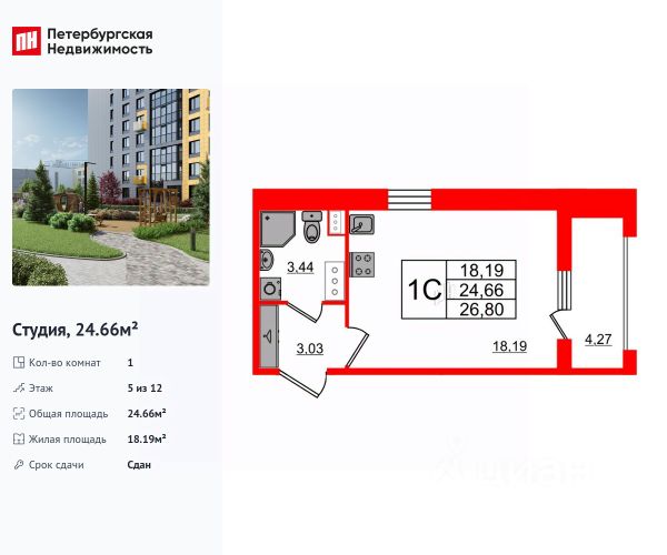 Квартира находится в корпусе 4.1.2. Дом монолитный, одноподъездный, высотой 25 этажей. На этаже 9 квартир. В подъезде 2 пассажирских и 1 грузовой лифт. Строительство окончено, дом сдан в 1 квартале 2024 года. Оформление сделки по договору купли-продажи.