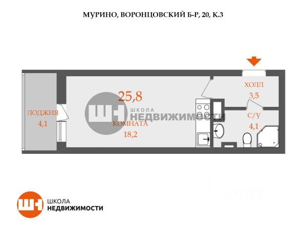 В качестве иллюстрации возьмём конкретику: студия в жилом комплексе "Лампово", улица Графская, дом 6, корпус 4. Всеволожский район, Ленинградская область.