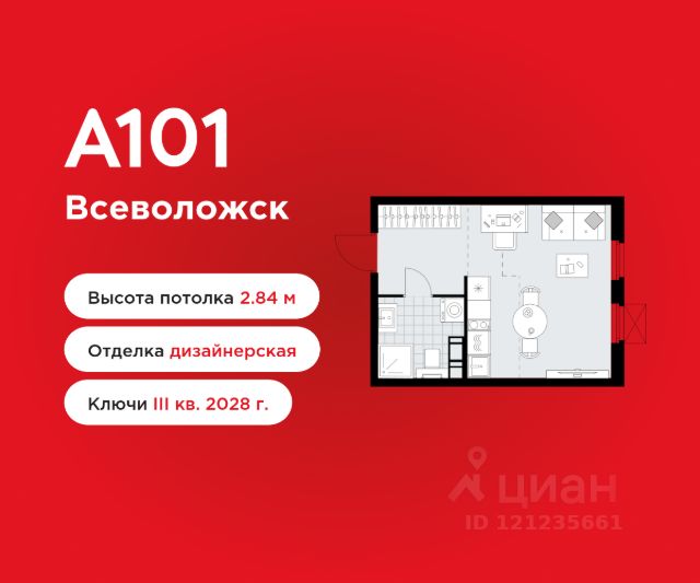 Студия площадью 20.60 в ЖК "А101 Всеволожск" c лоджией на 8 этаже. Квартира с предчистовой отделкой. Вид из окна во двор. В квартире 1 санузел. Высота потолков 2.80 м. ОТДЕЛКА Квартира с предчистовой отделкой предполагает: качественную стяжку на полах под финишное покрытие, потолок с обеспыливающей грунтовкой белого цвета, ровные стены с покрытием штукатурка. Выполнены все работы по проведению электрики. На все отделочные работы от застройщика предоставляется гарантия. Если вы хотите дозаказать дизайнерскую отделку, обращайтесь к нашими специалистами. ДВОРЫ И ОКРУЖЕНИЕ Большая часть территории комплекса отведена под зелёные благоустроенные зоны: теневые сады, уютные городские пространства с развитой тротуарной сетью и велодорожками - всё для вашего активного и здорового образа жизни. Внутренние дворы закрыты от посторонних и свободны от автомобилей. Каждый дом оснащён высокотехнологичными системами видеонаблюдения и контроля доступа, обеспечивая максимум безопасности и спокойствия для вас и ваших близких. Окружение района - живописный природный ландшафт. Всего в 5 минутах ходьбы располагается Ковалёвский лесопарк - источник кислорода, пространство для спорта, отдыха и приятных прогулок на свежем воздухе. ПАРАДНАЯ Мягкая мебель, живые растения и натуральные материалы в отделке формируют современный и уютный интерьер входной группы, радующий глаз и создающий приятную атмосферу для встреч с гостями. Для вашего удобства реализован безбарьерный вход, отвечающий требованиям доступной среды для всех жильцов, а также в каждой парадной имеется отдельное помещение для хранения колясок и велосипедов. ИНФРАСТРУКТУРА В жилой застройке сохранена естественная среда благодаря разнообразию растительности, извилистым дорожкам и уличной мебели из натуральных материалов. Здесь находится насыщенная сеть экотроп протяжённостью более 10 км прямо у дома, а просторная площадь позволяет жителям приятно провести время, общаться с соседями и отдыхать. Также предусмотрены зоны для отдыха и специально оборудованные спортивные площадки для активного образа жизни на свежем воздухе. На территории района ГК "А101" создает современный учебно-образовательный кластер, В "А1О1 Всеволожск" предусмотрена современная школа на 1300 учеников и 2 детских сада Всё самое необходимое - рядом с вашим домом. Выпить утром кофе в уютном кафе или поужинать с друзьями, отвести детей на развивающие занятия или игровую площадку, купить продукты и товары первой необходимости. В проекте запланировано уникальное гастрономическое пространство, располагающееся на основном пешеходном бульваре жилого района. Территория дополнительно оборудована местами отдыха на свежем воздухе, а для ресторанов и кафе будет предусмотрена возможность организации летних веранд. ЗАСТРОЙЩИК ГК "А101" - один из крупнейших застройщиков России. Каждая восьмая квартира, проданная в Москве, находится в районе, построенном компанией, что подчеркивает её значимость и успех на рынке недвижимости. Продам квартиру-студию первичка в Всеволожске.