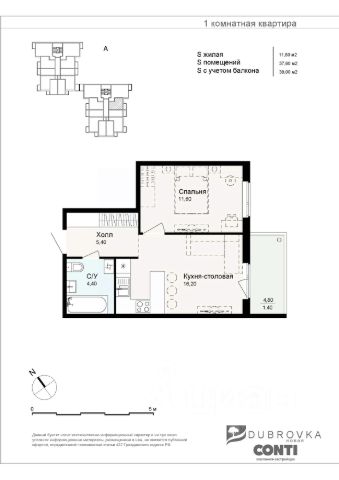 Квартира располагается на 5 этаже 5-этажного дома в ЖК Дубровка.Park.