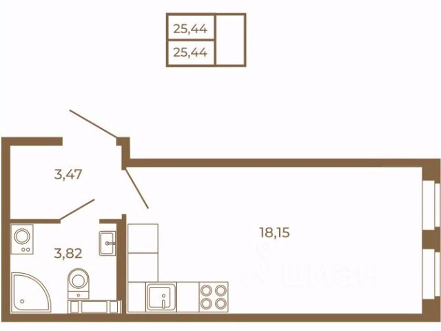 Продаётся студия в сданном доме (Златоглавая улица, 2к8 (Корпус 7.8)), срок сдачи: IV-кв. 2025, общей площадью 25.44 кв.м., на 4 этаже. ЖК расположен в Сертолово, мкр.Черная речка. 25 минут на машине до метро Парнас, либо 30 минут до метро Пр.Просвещения.