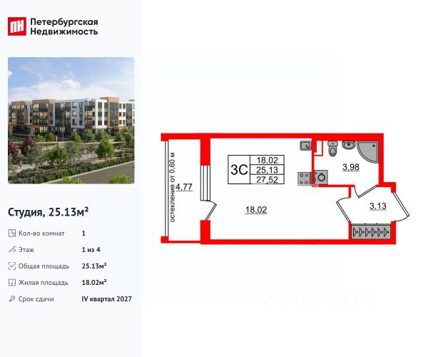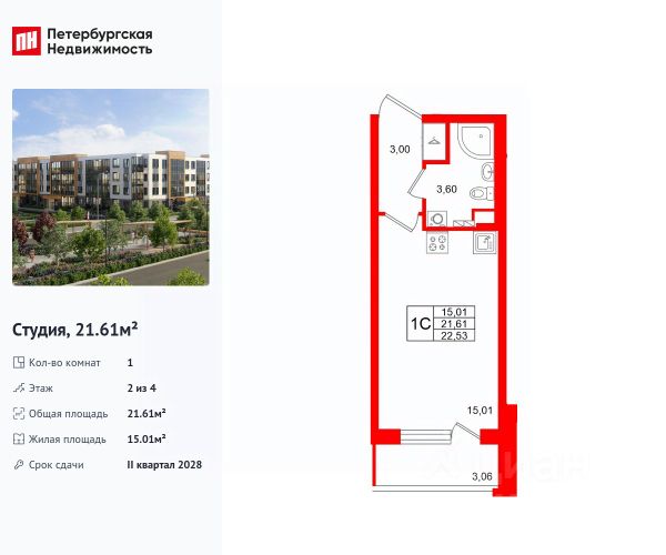Цена действует при 100% оплате и на определенные ипотечные программы. Подробности — в отделе продаж по телефону. Продается студия в ЖК "Пулково Лейк" на 2 этаже. Общая площадь составляет 21.80 кв. м. Квартира с чистовой отделкой. Жилой комплекс "Пулково Лейк" располагается по адресу Санкт-Петербург, Московский. Пулково Лейк - проект малоэтажной застройки на берегу озера на границе Московского и Пушкинского районов. Дома высотой всего 4 этажа, квартиры от уютных студий до трехкомнатных квартир для большой семьи. Широчайший выбор планировок, включая квартиры с мастер-спальнями, патио, каминами, саунами, двухуровневые квартиры. Школа, детские сады, парк на берегу озера и выезды на Пулковское и Петербургское шоссе. Расположение: • 5 мин на авто до Аэропорта Пулково; • 10 мин на авто до станций метро "Московская; • 10-15 мин на авто до городов Пушкина, Павловска и Гатчины; • 20 мин на авто до центра Санкт-Петербурга. Квартиры в проекте сдаются с предчистовой и чистовой отделкой Соmfоrt Stоnе и Соmfоrt Wооd по современным стандартам - Вы можете сами выбрать отделку, подходящую именно Вам. Дома оборудованы самыми современными инженерными системами и "Умным домом". В рамках проекта будет построена современная школа на 925 мест и 2 детских сада на 160 и 240 мест, выезды на Пулковское и Петербургское шоссе, а также храм рядом со сквером "Пулковский рубеж". Общественное пространство вдоль берега озера превратится во всесезонный парк, в котором найдется место для любых активностей от пробежек, катания на САПах и велосипедах до отдыха в шезлонгах и любования закатом солнца. Зимой будет работать каток, проложен лыжный маршрут, предусмотрено место для новогодней елки и горок для детей. Для Ваших питомцев - площадка для выгула собак. Преимущества: • Высота потолков от 2,6 до 4,5 м; • Уникальные планировки; • Парк на берегу озера; • Система "Умный дом"; • Дворы без машин; • Колясочная в парадной; • Видеонаблюдение в холлах, на первом этаже, в лифтах и в паркингах. Успейте приобрести квартиру на выгодных условиях! Чтобы узнать подробности, обращайтесь за консультацией по телефону. Продам квартиру-студию первичка в районе Пушкинский в Санкт-Петербурге.