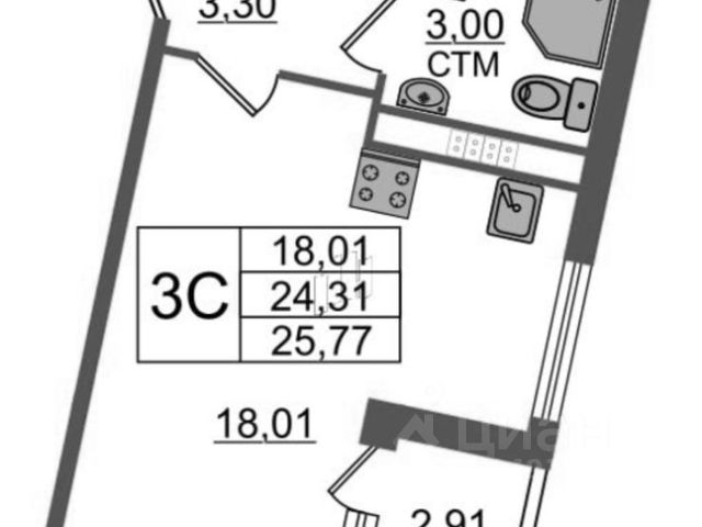 1-комн. квартира-студия в ЖК "VEREN VILLAGE Стрельна" на 1 этаже. Квартира без отделки, новый собственник может сделать ремонт по индивидуальному дизайн-проекту. Общая площадь: 28.6 кв.м., площадь гостиной 19.91 кв.м., из которых 5 кв.м. выделено под кухонную зону. Все окна выходят на одну сторону. В квартире один балкон, один совмещенный санузел. Наличие террасы в квартире открывает возможность для обустройства дополнительной площади. Высота потолков 2.8 м.