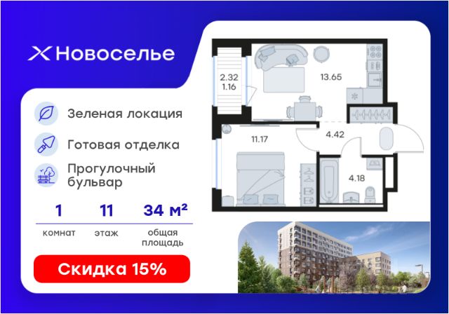 Новоселье — новый проект комфорт-класса на юго-западной границе Санкт-Петербурга и Ленинградской области. Близость к зеленым зонам Гореловского лесопарка и природного Шунгеровского заказника, а также пешеходный многофункциональный бульвар в центре квартала — идеальное место для тех, кто ценит природу и тишину, при этом не готов отказываться от благ современной инфраструктуры.