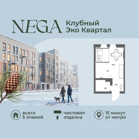 Продаётся квартира-студия 32 м² в эко-квартале NEGA в Новом Девяткино. Квартира находится на 3 этаже пятиэтажного дома — это единственный комплекс такого формата в Девяткино, без "стены" из высоток за окном. Планировка позволяет разделить приватную и общую зоны, удобно расставить мебель и организовать хранение. Отделка от застройщика: можно въехать сразу после сделки или сделать интерьер под себя без лишних переделок. NEGA — квартал для тех, кто хочет жить у природы, а не просто "видеть её издалека". Дома стоят рядом с лесом и прудом, поэтому из двора буквально несколько минут до прогулочных троп и воды. Территория закрыта от посторонних и машин: транспорт остаётся по периметру, внутри — только люди, детские игры и прогулки. Во дворе расположены детские и спортивные площадки, зоны спокойного отдыха и собственный детский сад — пространство читается и для ребёнка, и для взрослого. Входы в дома устроены с уровня земли, без высоких ступеней и крутых пандусов — удобно заходить с коляской, велосипедом, самокатом или с покупками в руках. В подъездах предусмотрены колясочные и аккуратные общие зоны в нейтральной гамме, которые поддерживают ощущение домашнего, а не "офисного" пространства. При этом NEGA не отрывает от города. До метро "Девяткино" примерно 15 минут на машине: легко добраться до Петербурга на работу или учёбу и вернуться в более спокойную зеленую среду. В пешей доступности от квартала — магазины, детские сады, школы, бытовые сервисы и остановки общественного транспорта. Квартира в NEGA подойдет тем, кому важны лес, вода и малоэтажная застройка, но при этом нужна нормальная транспортная доступность и привычная городская инфраструктура рядом с домом.