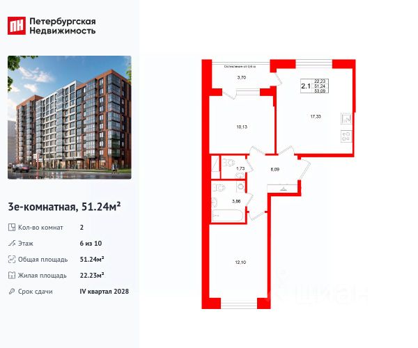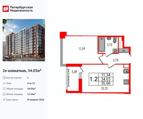 Квартира расположена на 6 этаже из 12-ти.