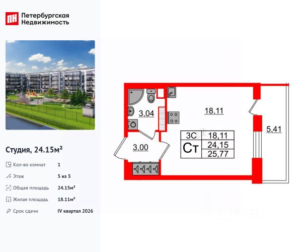 Продается уютная студия от застройщика в жилом комплексе "Парадный ансамбль" в престижном Московском районе. До метро можно добраться на транспорте всего за 20 минут. Удобная, классическая, функциональная европланировка, вместительная прихожая 3.04 м². Общая площадь студии - 23.5 м², жилая 18.05 м², высота потолка 3.07 м. Квартира продается с отделкой "Норд Лайн светлый". Что особенного в ЖК "Парадный ансамбль"? • Уникальные квартиры. Хай Флет (High Flat) на последних этажах, палисадники у квартир на первом этаже, семейные секции, квартиры с саунами и окном в ванной • Масштабное малоэтажное строительство в престижном Московском районе • Рекреационные зоны: парадный парк в центре квартала, ручей с собственной набережной, центральная площадь, ресторанный комплекс и пешеходный бульвар • Фасады из керамогранита и кирпича с яркими и акцентными входными группами • Две самые большие площадки Setl Kids и Setl Sport • Инновационный Лицей Setl с оригинальной архитектурной концепцией и уникальной образовательной средой