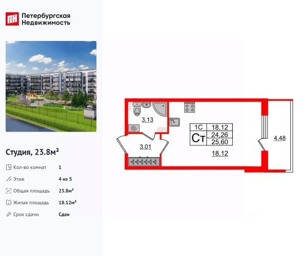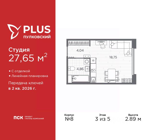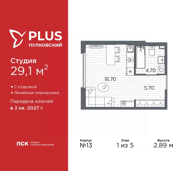 Просторная 1-комн. квартира-студия с отделкой в ЖК "PLUS Пулковский" на 5 этаже. Общая площадь: 20.5 кв.м., площадь гостиной 13.7 кв.м., из которых 5 кв.м. выделено под кухонную зону. Все окна выходят на одну сторону. В квартире один совмещенный санузел. Высота потолков 2.89 м. Дом монолитный, трехподъездный, высотой 5 этажей. Квартира находится в 3-й секции в корпусе 13. На этаже 6 квартир. В подъезде 1 грузовой лифт. Начало строительства - 1 квартал 2026 года. Окончание строительства - 2 квартал 2027 года. Оформление сделки по договору долевого участия. Уютный пятиэтажный city квартал PLUS Пулковский расположен в престижном Московском районе на пересечении Пулковского и Волхонского шоссе в новом формирующемся микрорайоне. Рядом проходит одна из важнейших транспортных артерий города Пулковское шоссе, а в 10 минутах езды два въезда на КАД и въезд на ЗСД. Благодаря удобному и быстрому выезду на Пулковское шоссе, можно легко добраться до центра города за 35 мин. До станций метро "Московская" и "Купчино" - 15 мин. на машине, а до аэропорта Пулково - 17 мин. В составе квартала: 30 пятиэтажных домов, школа со спортивным стадионом, 2 детских сада с бассейнами, наземные и подземные паркинги, центральный зеленый бульвар с play hub и местами отдыха. Благоустройство квартала продумано до мельчайших деталей, в его основе - забота о качестве жизни каждого жителя. Дома возводятся по современной монолитной технологии строительства с вентилируемыми фасадами. Благодаря большим увеличенным окнам и отсутствию высокоэтажных домов, во всех квартирах максимальный объем естественного света. В составе квартала запланированы социально-значимые объекты: школа на 825 мест со спортивным стадионом и бассейнами, два детских сада с бассейнами на 220 мест каждый. Территория квартала зонирована таким образом, чтобы автомобильные и пешеходные потоки и не пересекались. Прогулочные и велосипедные дорожки отделены от автомобильных проездов зелеными насаждениями. Дворы закрыты для машин, что дает чувство дополнительной безопасности для жителей особенно, для самых маленьких. Вся территория квартала безбарьерная. Здесь нет пандусов, резких перепадов высот или неудобных ступеней. Вход в парадные с уровня земли. В каждом дворе есть своя оборудованная детская площадка. А в центре микрорайона расположится большая игровая площадка play hub с пространством для командных игр. PLUS Пулковский располагается в молодом микрорайоне, который сейчас находится в стадии активного развития. Он будет обладать собственной развитой инфраструктурой. В радиусе 15 минут езды на автомобиле располагаются многочисленные магазины, супермаркеты, спортивные, образовательные и медицинские учреждения, парки и достопримечательности. Для автомашин предусмотрены отдельно стоящий 5-ти этажный паркинг на 958 машино-мест, две подземные парковки на 367 машино-мест и наземные парковочные зоны по внешнему периметру микрорайона. #z6Fu3V
