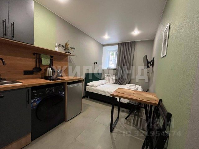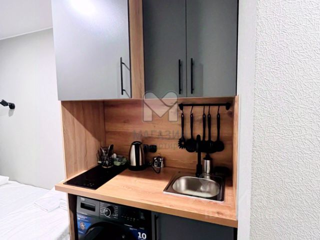 Полноценная студия со своей кухней и сан узлом. Отдельная новая металлическая входная дверь, прихожая, коридор и кухня выложены красивой орнаментальной плиткой. Произведена замена коммуникаций, новая электропроводка, установлены эл розетки в удобных местах. Своя собственная ванная комната имеет душевую кабину и новый унитаз. В кухонном пространстве установлена плита и стильная мойка, под которую легко вмещается стиральная машина.