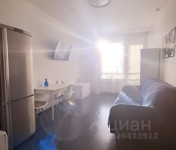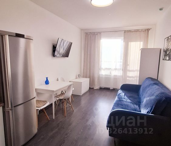 Квартира-студия сдаётся с полной чистовой отделкой высокого качества ""NORD LINE WHITE"", на полу современный кварц-виниловый ламинат, гладкие обои под покраску, натяжные потолки, санузел полностью в кафеле, укомплектованный всей сантехникой. Электрический теплый пол в санузле, на балконе на полу плитка, коллекторная разводка труб отопления (трубы под полом создают эффект теплого пола в комнате).