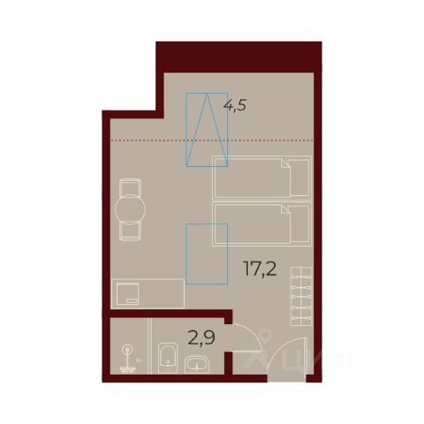 В квартире выполнен дизайнерский ремонт, который сочетает в себе современный стиль и функциональность. Пространство организовано так, чтобы максимально использовать каждый квадратный метр. Санузел совмещенный, оснащен современной сантехникой. Окна выходят во двор, что обеспечивает тишину и спокойствие. Телевизор,мини-холодильник,стиральная машина,микроволновая печь, бойлер
