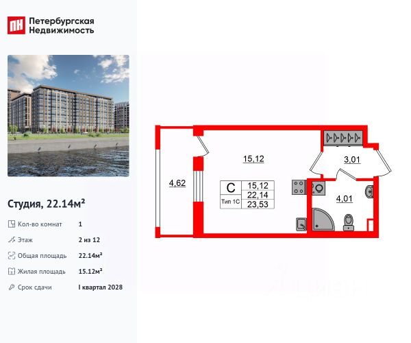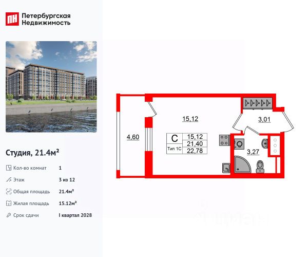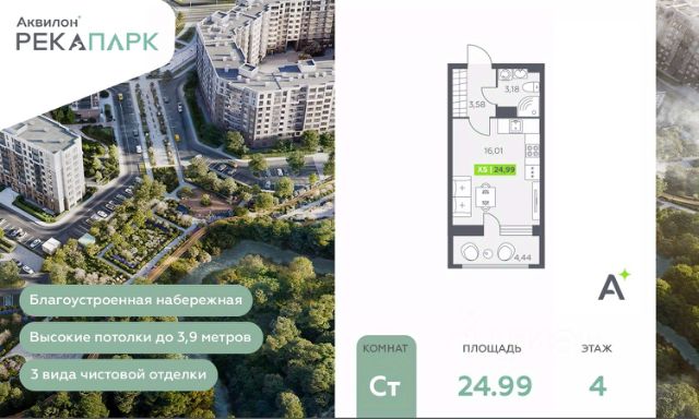 Продается однокомнатная квартира-студия в ЖК "Аквилон РекаПарк" на 4 этаже. Общая площадь: 24.99 кв.м., площадь гостиной 16.01 кв.м., из которых 5 кв.м. выделено под кухонную зону. Все окна выходят на одну сторону. В квартире один балкон, один совмещенный санузел. Высота потолков 2.74 м. Дом монолитный, многоподъездный, высотой 9 этажей. Квартира находится в 1-й секции в корпусе 1. На этаже 14 квартир. В подъезде 1 пассажирский и 1 грузовой лифт. Окончание строительства - 4 квартал 2027 года. Оформление сделки по договору долевого участия. Откройте для себя "Аквилон РекаПарк": идеальное место для жизни и отдыха у воды. Смотреть на течение реки, дышать полной грудью, гулять по набережной или наблюдать за огнями большого города из окна своего дома. При этом оставаться в комфортном пространстве новых технологий, стильного дизайна и современных систем безопасности. Возможности, которые открывает для вас "Аквилон РекаПарк" — быть в гармонии с природой, но всегда находиться в центре городской жизни. Все, что нужно для воплощения ваших желаний — рядом с вами. #zM8UZz