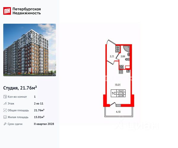 Продается от собственника уютная и перспективная квартира-студия в идеальной локации, в современном жилом комплексе на Заневском проспекте, всего в 3 минутах пешком от станции метро Ладожская. Доходность от аренды очень высокая!!! Квартира расположена на 4 этаже 16-этажного монолитно-кирпичного дома, построенного в 2018 году. Общая площадь составляет 28 кв. м, жилая — 19 кв. м, кухня — 5 кв. м. Высота потолков — 2.55 метра. Из окон открывается вид на тихий двор, а наличие балкона позволяет наслаждаться свежим воздухом.