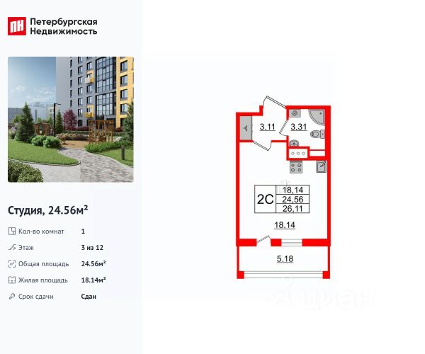 Продается просторная студия от застройщика в жилом комплексе "Прайм Приморский" в динамичном Приморском районе. До метро можно добраться на транспорте всего за 15 минут. Удобная, классическая, функциональная европланировка, просторная прихожая 5.18 м². Общая площадь студии - 27.8 м², жилая 18.71 м², высота потолка 2.77 м. Квартира продается с отделкой "Норд Лайн светлый комфорт". Что особенного в ЖК "Прайм Приморский"? • Живописные виды на Шуваловский карьер и лесной массив • "Парящие" французские балконы • Центральная входная группа • Креативное пространство в центре проекта, летняя терраса для отдыха • Приватные лаундж-зоны на крыше домов (3 корпус)