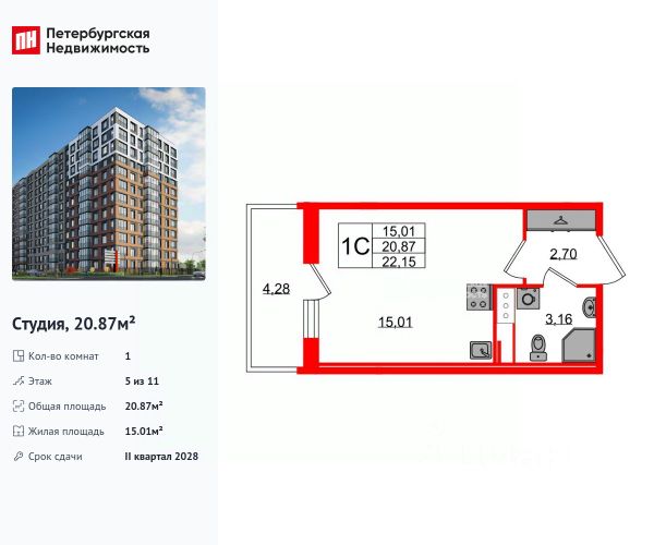Цена действует при 100% оплате и на определенные ипотечные программы. Подробности — в отделе продаж по телефону. Продается студия в ЖК "Дыбенко Парк" на 18 этаже. Общая площадь составляет 20.10 кв. м. Квартира с чистовой отделкой. Жилой комплекс располагается по адресу Санкт-Петербург, проспект Товарищеский. Новый проект комфорт плюс-класса, расположенный в пешей доступности от станции метро "Улица Дыбенко". В проекте предусмотрен широкий выбор планировочных решений: от функциональных студий до просторных двух - и трехкомнатных квартир с мастер-спальнями и балконами. Также доступны лоты с двумя окнами на кухне/в спальне. Все квартиры сдаются с чистовой отделкой в двух цветовых решениях - Comfort Stone и Comfort Wood. Развитая социальная инфраструктура, налаженная транспортная система, близость к паркам и торговым центрам - здесь созданы все условия для активной городской жизни. Возле дома появится отдельно стоящий 9-этажный паркинг на 331 машиноместо. Двор жилого комплекса будет закрытым. Центральное место благоустроенной территории займет детская зона, которая будет отделена от зоны отдыха и спортивной площадки зелеными насаждениями. Расположение: • 10 мин на авто до Октябрьской набережной; • 15 мин пешком до метро Улица Дыбенко; • 15 мин пешком до парка им.Есенина. • 15 мин на авто до Мега-Дыбенко; • 30 мин на авто до центра Санкт-Петербурга. Данная локация станет отличным выбором для семей с детьми. Рядом с "Дыбенко Парком" уже сейчас функционирует множество школ и детских садов, медицинских центров и магазинов. Дополнительно на первом этаже дома откроют детский сад на 65 мест и просторный кабинет врача общей практики. Дома оборудованы самыми современными инженерными системами и "Умным домом". Преимущества: • Высота потолков от 2,7м • Уникальные планировки с балконами; • Закрытая территория; • Система "Умный дом"; • Кладовые в подвале и на этаже; • Колясочная в парадной; • Видеонаблюдение в холлах, на первом этаже, в лифтах и в паркингах. Успейте приобрести квартиру на выгодных условиях! Чтобы узнать подробности, обращайтесь за консультацией по телефону. Продается квартира-студия с балконом в районе Невский в Санкт-Петербурге.