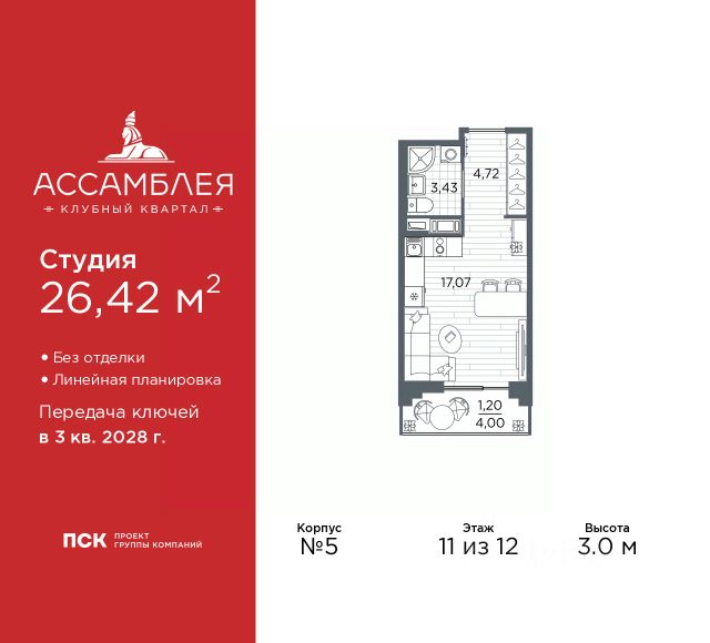 Продается уютная студия от застройщика в жилом комплексе "Аристократ" в уютном Василеостровском районе. До метро можно добраться пешком всего за 10 минут. Удобная, классическая, функциональная европланировка, вместительная прихожая 3.1 м². Общая площадь студии - 24.11 м², жилая 18 м², высота потолка 2.7 м. Квартира продается с отделкой "NORD LINE BUSINESS". Что особенного в ЖК "Аристократ"? • Васильевский остров - историческая локация с современными культурными кластерами • Индивидуальный облик каждого корпуса в единой архитектурной концепции • 7 парадных лобби с потолками до 7-ми метров • Цветущие сады, зеленые гостиные, фонтаны • Клуб резидентов "Аристократ": фитнес-клуб, коворкинг, гостиная с роялем, детский центр с кинотеатром • Технологичная среда на территории, в доме и в квартире • Премиальная отделка квартир - Nord line business Квартира-студия с балконом в районе Василеостровский в Санкт-Петербурге.