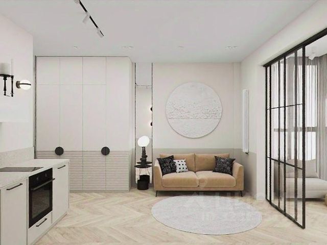 Студия 22,5 м² с отделкой под ключ и глубокой лоджией-аэрарией. Находится лот на 8 этаже, откуда открывается завораживающий вид на лес.