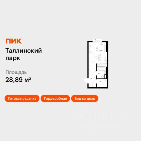 Продаётся квартира-студия площадью 22,7 кв.м на 6 этаже 15 этажного дома (Корпус 4, Секция 1) проекта ПИК Янинский лес. Светлый просторный подъезд на уровне земли, функциональная планировка, большие окна, c отделкой. Жилой квартал "Янинский лес" возводится в районе Янино-1 Ленинградской области. Автобусная остановка находится в 3 минутах пешком. Проект расположен вплотную к восточной границе Санкт-Петербурга - в 4 минутах от КАД. До метро "Ладожская" - 23 минуты на общественном транспорте. До исторического центра города можно доехать за 25 минут на автомобиле. "Янинский лес" - масштабный проект из 32 жилых корпусов, где будет всё для комфортной жизни. Здесь предусмотрены надземные паркинги, откроются детские сады, школа и поликлиника. Кроме этого, появятся места, в которых можно проводить свободное время: ледовая арена и торговый центр площадью больше 3000 м². Жилой район строится по всем правилам ПИК-Стандарта: в зелёных дворах-парках появятся современные детские и спортивные площадки, пешеходный бульвар и другие места для отдыха. На первых этажах разместятся магазины, кафе и другие сервисы. Во дворах не будет автомобилей, а для гостей предусмотрены парковочные места. Проект окружают лесные массивы. В пешей доступности находится Ржевский лесопарк: летом там можно гулять и собирать грибы, а зимой кататься на лыжах. Также рядом расположен памятник природы Колтушские высоты - парк с обустроенными экотропами и веломаршрутом. А главное место притяжения местных жителей - озеро с обустроенным местом для пикников. Артикул 1049715 (Застройщик ООО "СПЕЦИАЛИЗИРОВАННЫЙ ЗАСТРОЙЩИК"ЭКСТРАГРАД") [cn_sbp_1842884]