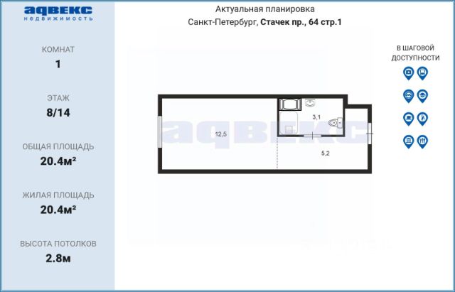 Продаются 1-комн. апартаменты-студия от застройщика с отделкой в ЖК "Industrial AVENIR" на 13 этаже. Общая площадь: 17.4 кв.м., площадь гостиной 14.2 кв.м., из которых 5 кв.м. выделено под кухонную зону. Все окна выходят на одну сторону. В апартаментах один совмещенный санузел. Высота потолков 2.5 м. Апартаменты находятся в корпусе 1. Дом монолитный, одноподъездный, высотой 13 этажей. На этаже 64 квартиры. В подъезде 3 пассажирских и 3 грузовых лифта. Окончание строительства - 3 квартал 2026 года. Оформление сделки по договору долевого участия. В шаговой доступности от дома находятся станции метро (расстояние по прямой): "Кировский завод" (300 м), "Путиловская" (300 м), "Автово" (1.6 км), также недалеко от этого корпуса расположены станции метро: "Нарвская", "Ленинский Проспект", "Балтийская". 13ти этажное здание апарт-отеля строится по монолитной технологии. В номерном фонде 739 апартаментов, в том числе юниты с террасами и в формате "евро 2", офисные и коммерческие помещения, оборудованный коворкинг, подземный паркинг. На первом этаже лобби 160 кв.м. с рецепшн, выставочным пространством, кафе и гостевой зоной. Окончание строительства апарт - отеля - III квартал 2026 года. Оформление сделки по договору долевого участия. Семейная ипотека на апартаменты не распространяется. ОТДЕЛКА Все апартаменты сдаются с полной чистовой отделкой, выполненной в концептуальном индустриальном стиле. Стены оформлены обоями под покраску в сером оттенке. Одна из стен акцентная - с декоративной штукатуркой, имитирующей бетон. Элементы черного металла представлены в трековых светильниках, дверной фурнитуре и сантехнике. На полу уложен износоустойчивый ламинат с деревянной фактурой. Еще одним элементом индустриального стиля в отделке апартамента является крупноформатный керамогранит на полу и стенах санузла, имитирующий фактуру и цвет кортеновской стали. ЗD по шоу руму. РАСПОЛОЖЕНИЕ Апарт-отель Industrial Avenir строится в 300-х метрах от метро "Кировский завод" и "Путиловская" (открытие 2025 г) на центральной магистрали Кировского района проспекте Стачек. Близость развязок с ЗСД и КАД фактически снимает любые ограничения в осмотре пригородов и выбора направлений в личном туристическом плане на день. Предпосылкой для открытия пятого апарт-отеля сети Avenir - Industrial Avenir, стал высокий потенциал локации рядом с крупным производственным кластером, центральной магистралью Кировского района и шаговой доступностью от двух станций метро. Новый апарт-отель возводится рядом с первым апарт-отелем сети - Putilov Avenir, открытым в 2022 году. УПРАВЛЕНИЕ ДОХОДНОСТЬЮ Управлением номерным фондом Industrial Avenir займется структура ГК "ПСК" PSK Invest, входящая в пятерку крупнейших управляющих компаний апарт-отелями в Санкт-Петербурге. Купить апартаменты в Industrial Avenir возможно сразу с управлением, заключив договор с УК PSK Invest и, тем самым, приобрести готовый арендный бизнес. Апартаменты недвижимое имущество, которое является вашей собственнос