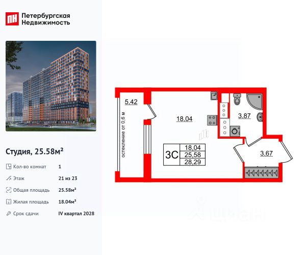 Продаётся квартира - студия от застройщика.