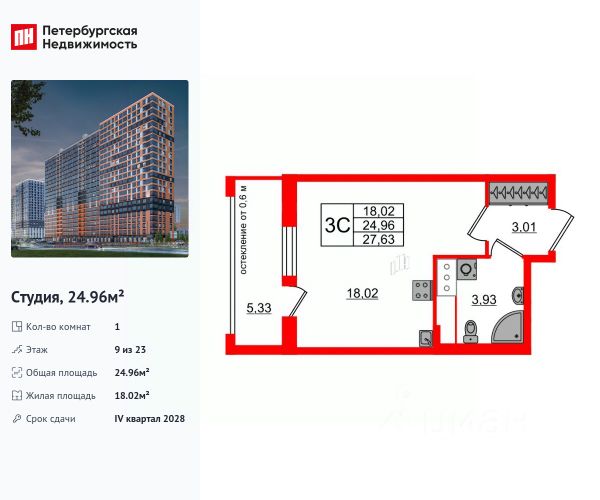 Купить квартиру-студию с дизайнерским ремонтом рядом с метро Рыбацкое (от 3,7 млн руб.)