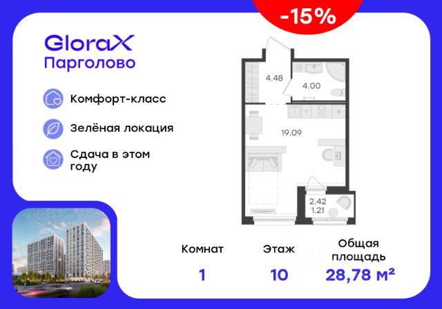Дом сдан. Ключи сразу. Ипотека с господдержкой. Продается квартира-студия в жилом комплексе "Прагма City", общая площадь - 38.4 кв.м. В квартире два окна с видом на Шуваловский парк. Планировка позволяет зонировать пространство, расположить полноценную кухню и обеденную зону отдельно от спального места. Из кухни есть выход на лоджию с панорамным остеклением. В получившейся отдельной комнате легко встанут диван и стол для работы. Длинный широкий коридор вмещает небольшую гардеробную. Эта уютная квартира спроектирована для вашего комфорта! ЖК "Прагма City" предлагает своим будущим жильцам проживание в домах, выполненных по монолитной технологии с гарантийным сроком службы 150 лет. Закрытая охраняемая территория, наличие консьержа и видеонаблюдения делают проживание безопасным. Родители могут безбоязненно отпускать детей для прогулок на оборудованных детских и спортивных площадках. Благодаря технологии строительства, грамотного проектированию, а также установки двойных стеклопакетов, остекленных балконов и лоджий, дом имеет высокий класс энергоэффективности "А". ЖК "Прагма City" находится в живописном зеленом районе Санкт-Петербурга. В двух шагах расположен Шуваловский парк, который является исторической достопримечательностью и популярным местом отдыха горожан. Многочисленные пруды, обилие зеленой растительности вокруг и оригинальные архитектурные формы ЖК позволят жителям комплекса приятно проводить время всей семьей. Развитая инфраструктура района, большое количество разнообразных магазинов и развлекательных центров, удобные транспортные развязки делают проживание в новом жилом комплексе комфортным и уютным.
