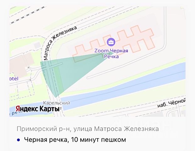 престижного Приморского района с развитой социальной и торговой инфраструктурой. В пешеходной доступности находится станция метро Черная речка (5 мин пешком) и ж/д станция Новая Деревня (200 м), несколько остановок автобусов и маршрутных такси (200 м), Мигуновский сад  5 мин, Набережная Большой Невки  10 мин.