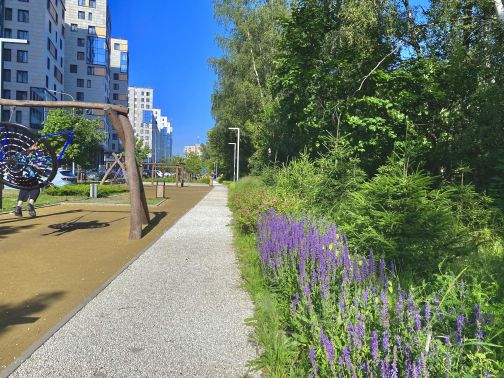 доставки и вендинговых автоматов. В отдельных помещениях оборудованы колясочные и зоны для хранения велосипедов и самокатов, которые там же можно и зарядить.