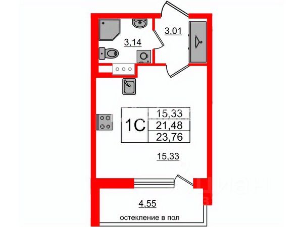 Квартира очень теплая и светлая, с хорошей планировкой: комната 17.2 м2 с двумя окнами и выходом на застекленную лоджию 2.0 м2, комфортная прихожая 3.5 м2, совмещенный с/у 3.6 м2. Окна выходят во двор, юго-восток. Высота потолка 2.75 м. Ремонт от застройщика: на стенах обои под окраску; крашеные потолки; на полу ламинат; в с/у - на стенах и полу керамическая плитка, современная сантехника; входная металлическая дверь; на лоджии крашеный потолок, облицованный плиткой пол.