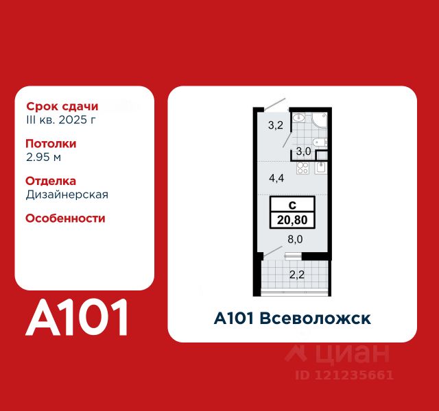 Продаётся студия в ЖК "Большая Охта" на 2 этаже. Общая площадь составляет 23.30 кв. м. Квартира с white box отделкой. Жилой комплекс "Большая Охта" располагается по адресу Санкт-Петербург, Красногвардейский. "ЛСР. Большая Охта" - проект бизнес-класса, в Красногвардейском районе между Якорной и Партизанской улицами, рядом с центром Петербурга. Престижный комплекс с удобной пешеходной и транспортной доступностью. Особенности квартиры высокие потолки и увеличенные окна. Горизонтальная разводка труб водоснабжения и отопления и вынесенные в холлы счетчики сохранят эстетичный дизайн комнат. Встроенные клапаны инфильтрации воздуха будут поддерживать чистоту и свежесть воздуха. Расположение: • 8 мин на авто до станции метро "Новочеркасская"; • 10 мин на авто до станции метро "Ладожская"; • 10 мин на авто до Таврического сада и исторического центра города; • 13 мин на авто до станции метро "Чернышевская"; • 25 мин на авто до КАД. Пространство внутри комплекса разделено на функциональные зоны: тематические, спортивные, уединенные. Все площадки окружают взрослые хвойные и лиственные деревья, подобранные с учетом роста, эстетики и сезонного цветения. Расширенная инфраструктура комплекса продумана до мелочей. Внутри квартала есть все необходимое для жизни с комфортом и удовольствием - детские сады и школы, магазины, площадки для спорта и отдыха, фитнес-залы, модные кофейни и общественные летние веранды. Преимущества: • Подземный паркинг и кладовые помещения; • Двор без машин; • Система "Умный дом" (в т.ч. управление домофоном со смартфона); • Пост охраны и консьерж; • Индивидуальный тепловой пункт; • Колясочные в каждой парадной; • Зарядка для электромобилей. Успейте приобрести квартиру на выгодных условиях! Чтобы узнать подробности, обращайтесь за консультацией по телефону. Продам квартиру-студию с евроремонтом рядом с метро Ладожская.