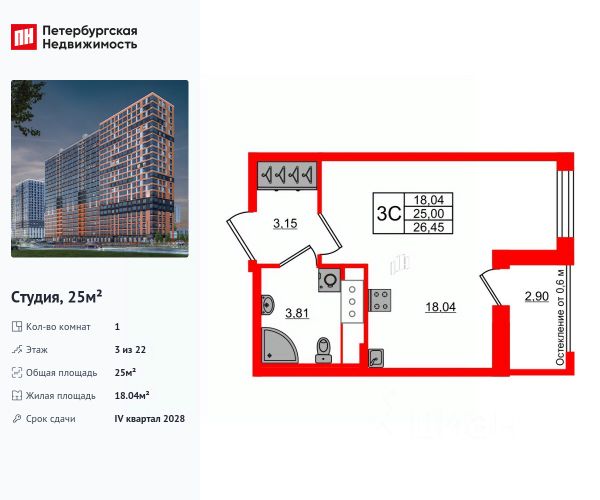 Продается просторная студия от застройщика в жилом комплексе "Город звезд" в новом городе на правом берегу Невы. До метро можно добраться на транспорте всего за 13 минут. Удобная, классическая, функциональная европланировка, просторная прихожая 3.26 м². Общая площадь студии - 24.62 м², жилая 18.03 м², высота потолка 2.77 м. Квартира продается с отделкой "NORD LINE SILVER". Что особенного в ЖК "Город звезд"? • Инновационный Лицей Setl с оригинальной архитектурной концепцией и уникальной образовательной средой • Невский лесопарк под окнами - всегда свежий воздух и полноценный отдых на природе • Четыре тематические площади отдыха с разнообразным благоустройством • Аллея Звёзд - променад протяженностью 5 км с ландшафтным озеленением, зонами отдыха и велодорожкой • Выход на набережную реки Утки, где можно порыбачить или взять напрокат лодку • Единая входная группа с ресепшен и подземный паркинг Продается квартира-студия с евроремонтом рядом с метро Обухово.