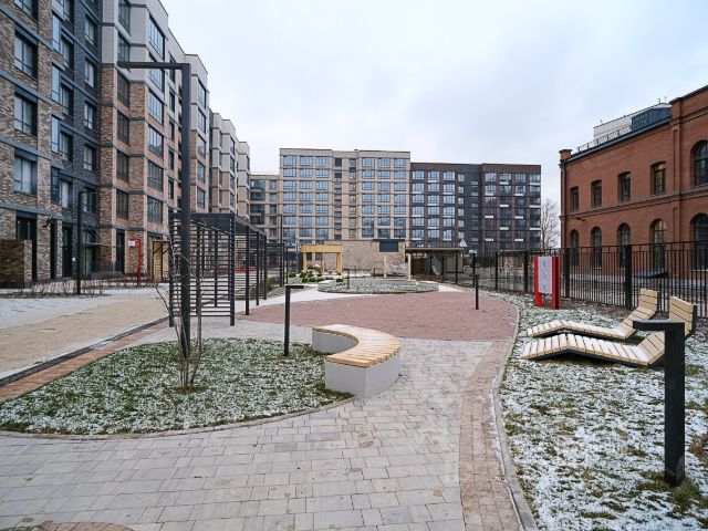 В большом внутреннем дворе располагается детский сад с бассейном на 110 мест, собственными площадками и закрытой территорией, а также большой спортивный стадион.