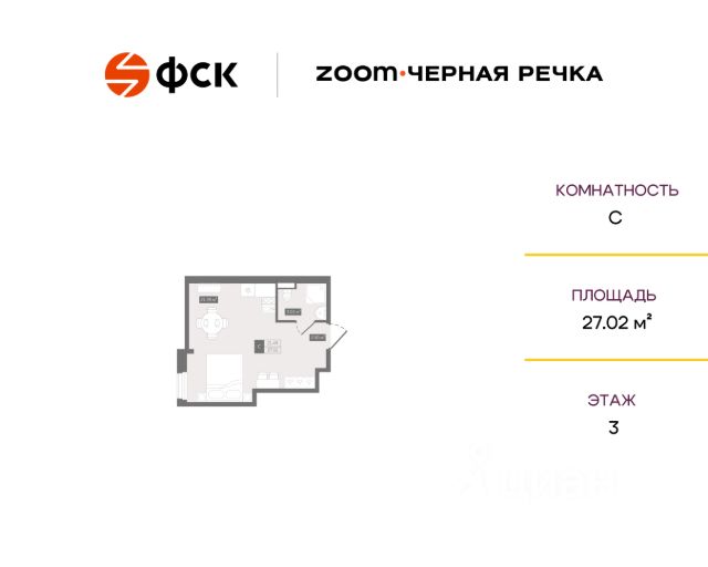 Новая панорамная студия с отделкой, мебелью и техникой в 10-ти минутах пешком от метро Черная речка и престижного Петроградского района Санкт-Петербурга