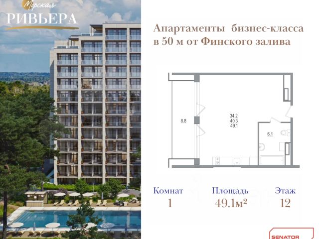 Продаются апартаменты у самого берега Финского залива площадью 22,6 м2 в комплексе бизнес-класса "Морская Ривьера". Располагаются в единственном корпусе на 8 этаже из 12. Лот с отделкой под ключ, с лоджией. Высота потолка 3м. ВЫСОКИЙ ИНВЕСТИЦИОННЫЙ ПОТЕНЦИАЛ: - Первая линия Финского залива — одна из самых востребованных туристических локаций в Петербурге, наравне с Невским проспектом; - Курортный район — локация с ограниченным предложением: новых проектов здесь почти не появляется, что повышает ценность недвижимости как при сдаче, так и при перепродаже; - На территории находится открытый круглогодичный 25-метровый бассейн, который притягивает туристов и летом и зимой, вы не будете проседать в доходе в несезон; - Самый востребованный вариант по площади среди туристов - чаще всего снимают именно просторные студии. ОГРАНИЧЕННОЕ ПРЕДЛОЖЕНИЕ: Комплекс включает только один корпус на закрытой территории 1,2 га — всего 287 апартаментов. Это не массовая застройка, а точечный премиальный проект, который сохраняет ликвидность даже в меняющихся экономических условиях. Есть лоты с террасами и лоджиями, панорамными окнами, видом на залив, с разными видами отделки под ваши цели. ПРЕМИАЛЬНАЯ ИНФРАСТРУКТУРА КУРОРТНОГО УРОВНЯ: На территории: открытый 25-метровый бассейн с подогревом, лаунж-зона с PS, тренажерный зал, теннисный корт, детские площадки, СПА-зона и видеонаблюдение по периметру. По сути — это готовый круглогодичный курорт. ЭНЕРГОЭФФЕКТИВНЫЕ МАТЕРИАЛЫ: Фасад комплекса облицован широкоформатной керамогранитной плиткой Laminam — устойчивыми к износу и погодным условиям. Установлены окна Deceuninck с классом энергоэффективности A+. Такие решения позволяют сократить будущие эксплуатационные расходы, что особенно важно для арендаторов. ФИНАНСОВАЯ ВЫГОДА УЖЕ НА СТАРТЕ: А еще в стоимость включен 20% НДС, которые вы можете сэкономить при оформлении апартамента на свое юридическое лицо. То есть сразу на этапе покупки получить скидку в 20%. Апартаменты продаются напрямую от застройщика. Запишитесь на консультацию или личный просмотр объекта — пока еще доступны лоты. Продается квартира-студия с лоджией в Зеленогорске.